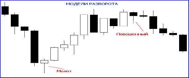 Молот и Повешенный – это абсолютно одинаковая по своему виду фигура. Разные названия связаны с тем, что она может появиться в разных местах графика – и приобрести совсем разное значение.