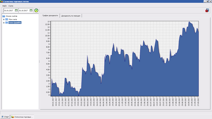 Эквити нашего системного портфеля с начала 2017 года показана на следующем рисунке. Доходность с начала года на текущий момент составляет +11.22%. Доходность за последние двенадцать месяцев: +23.56%.