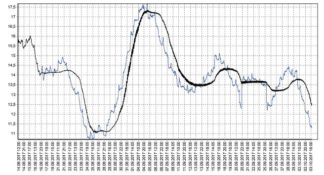 Значения близки к историческим минимумам. Диапазон колебаний последнюю неделю около 1000 пунктов. Для трендовых алгоритмов, прямо «раздолье» какое-то